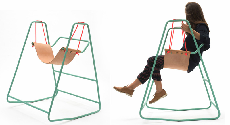 此款作品看起來是不是很像一個小型秋千,看起來簡潔大方,但是實(shí)際上,它并不是真正的秋千哦,因?yàn)椋鋵?shí)是一款搖椅,有點(diǎn)像外婆家慢悠悠的搖椅。